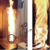 TV報道等で火災旋風の再現として紹介されているが、本当の火災旋風と渦の発生メカニズムが異なることに十分留意されたい。
